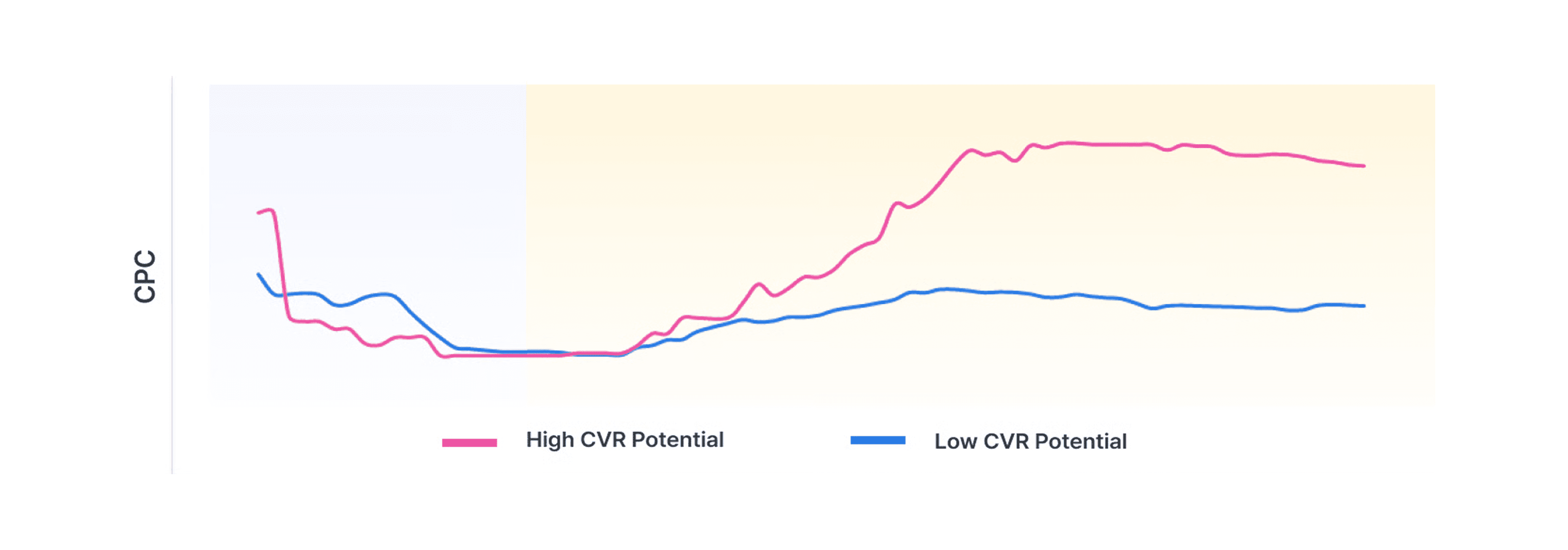 Purchase conversion rates vary by product due to several factors such as product characteristics, seasonality, and price. LG Optapex comprehensively analyzes data such as organic performance, advertising, inventory, and rankings to allocate more budget to products that generate the highest conversions at any given time. Conversely, products with lower conversion rates receive less budget. This process helps each product achieve its maximum potential with minimal cost.