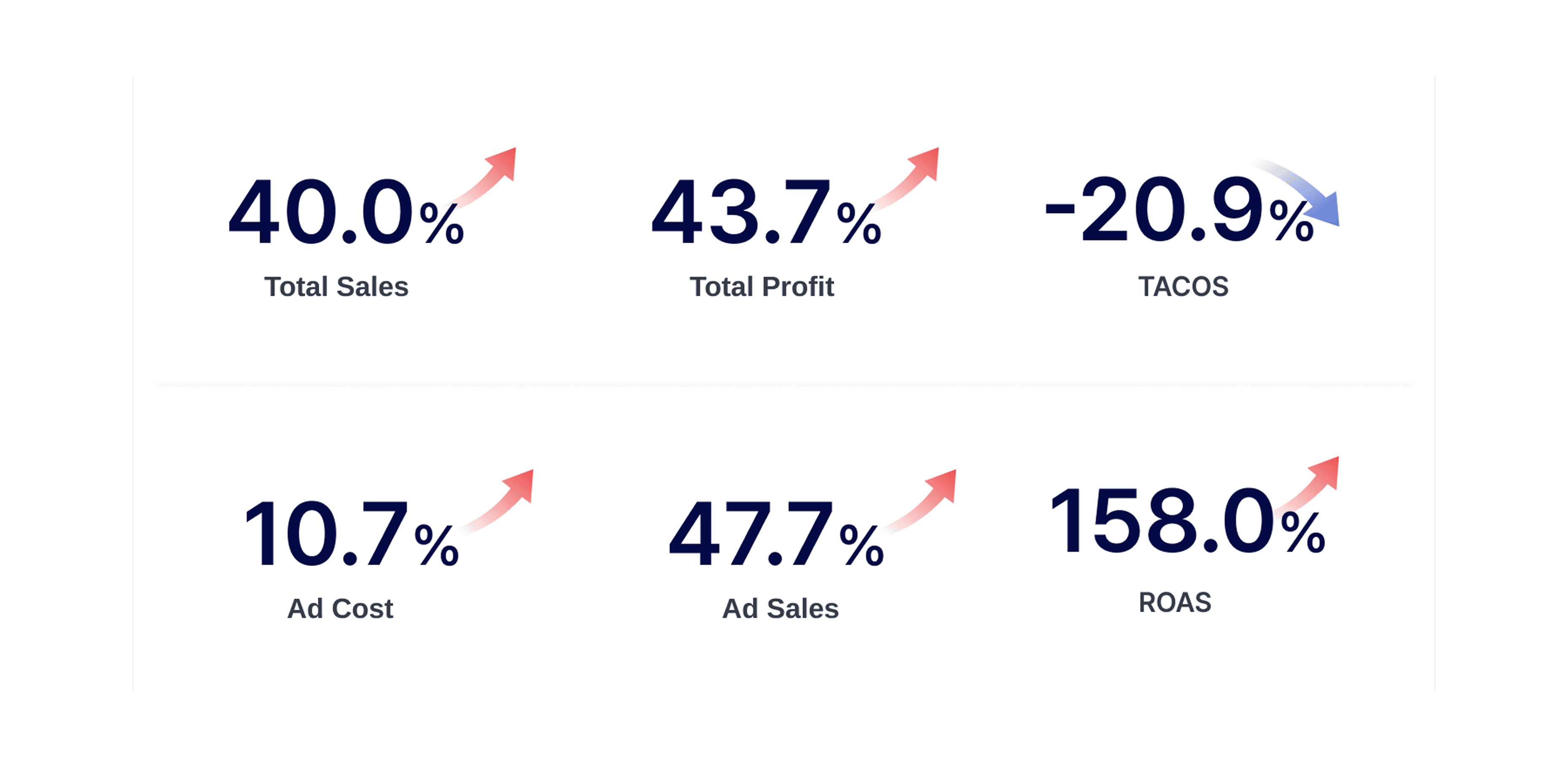 The most notable outcome was that advertising performance improved significantly even without a major budget increase. With TACOS decreasing by 20.9%, the overall burden of advertising on total revenue was reduced—proving that the investment was not just growing sales but growing profitably.